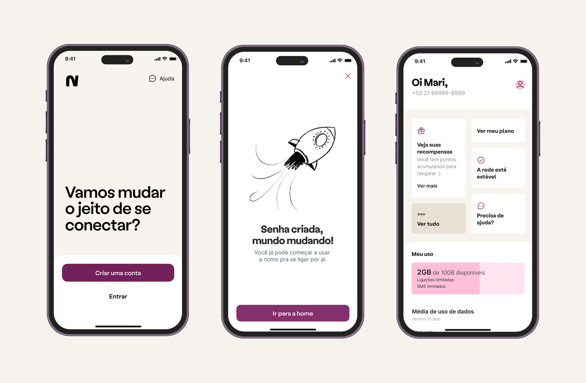 Nomo is a telecom startup that it was born to the way things are done in the telecommunications segment. From the desire comes the name NOMO - no more. The brand's proposal is not only to do things differently, but better. This implies the need to say generate opposition, proposing ew paths. In the telecom segment, the vices of visual language revolve around “neon lights” that mention speed (fiber optics) and three-dimensional effects in communication. The natural approach for Nomo is to propose something different from that. Every visual translation took place based on a simple proposition: in order to change, there must be the inevitable movement of opposition. Without destroying what already exists, but learning from what doesn't work to do better.